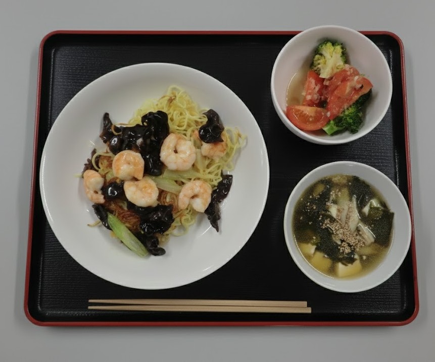メニューは、「広東風エビ焼きそば」「わかめと豆腐のごまスープ」「トマトとブロッコリーのおかかポン酢和え」の3品。講師の先生に丁寧に教わりながら作った料理はとても美味しく、参加者の皆さんは、「おいしい!」「料理の手順が理解できた」と話されていました。ご参加いただいたみなさま、ありがとうございました。